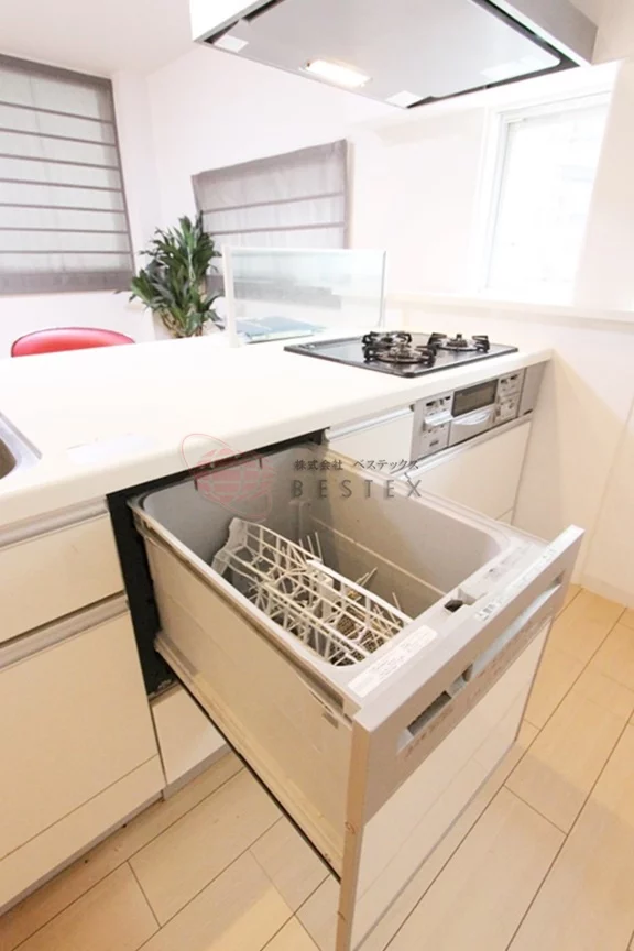 嬉しい食洗機付ガス3口システムキッチン。