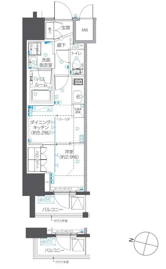 所在階5階 面積25.77㎡ 間取り1DK 賃料 156,000円