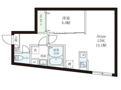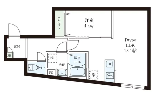 所在階4階 面積43.73㎡ 間取り1LDK 賃料 260,000円