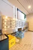 エントランスアプローチにはメールボックスが設置されており、入居専用のゴミ置き場もこのスペースにあります。