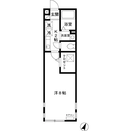 駐輪場・エアコン・下駄箱・クローゼット・バルコニー・1靴ガスコンロ・独立洗面台・