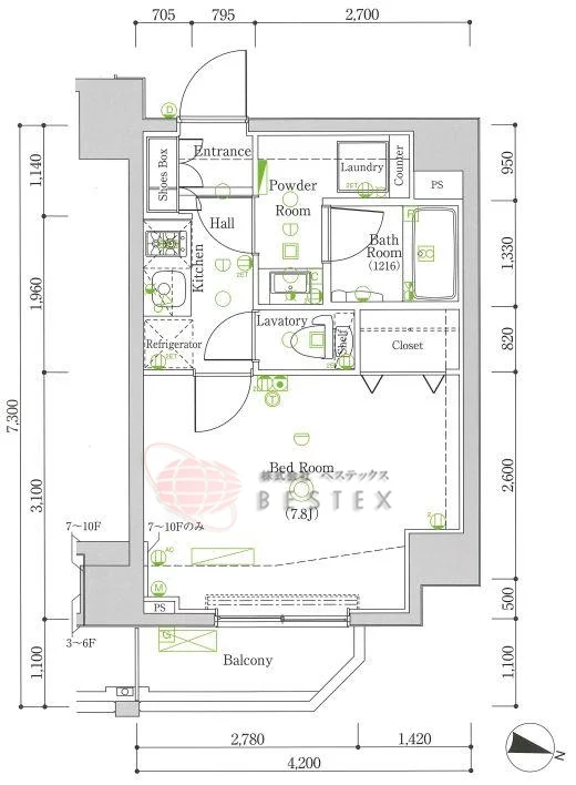 | 7階 | 1K | 25.69㎡ | … | … | … | … | 契約済み | 所在階*** 間取り1K |