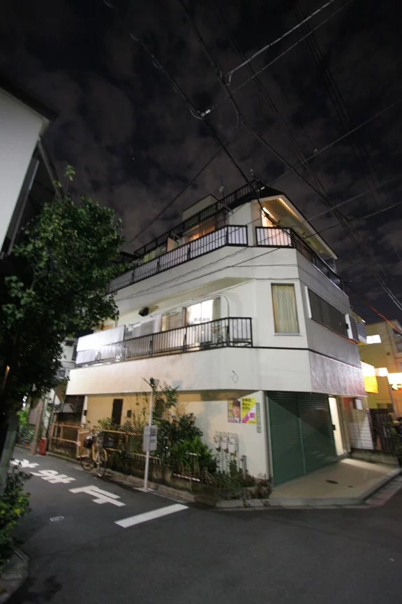 鉄骨造3階建ての1982年築の低層住宅。