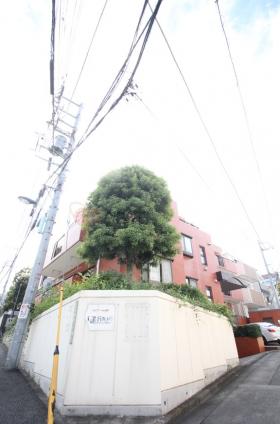 物件は1988年8月築、鉄筋コンクリート造の地上3階地下1階建てマンション。住宅地が広がるエリアにある低層マンションで、物件周囲には緑の植栽もあり、落ち着いた雰囲気・景観です。