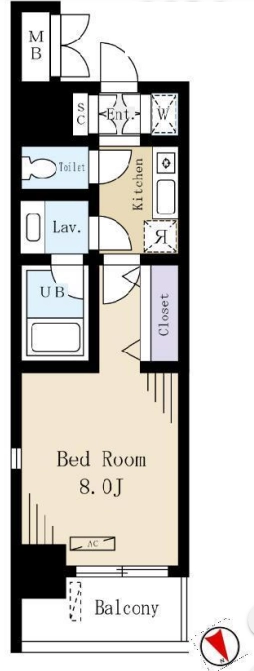 | 間取り | 1K | 面積 | 25.11㎡ |