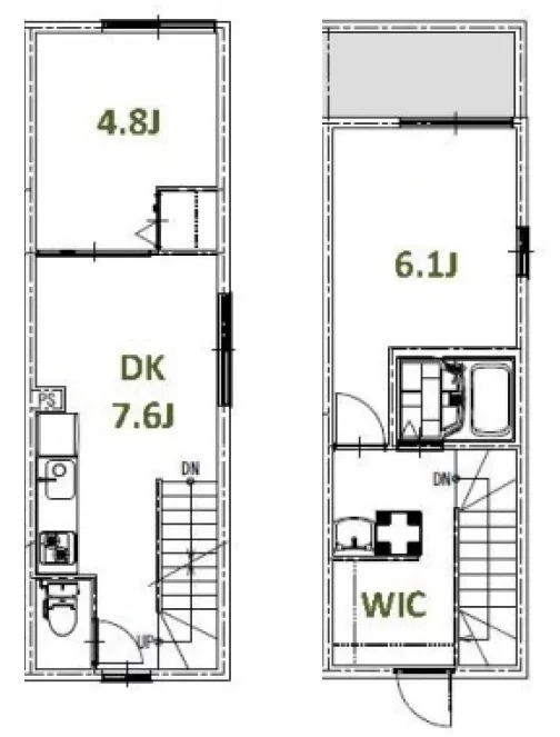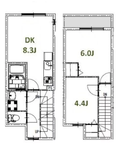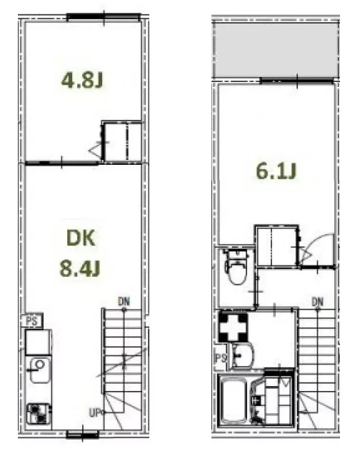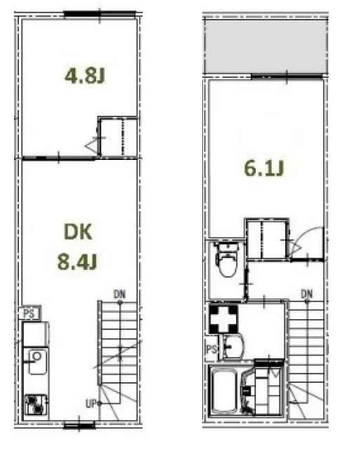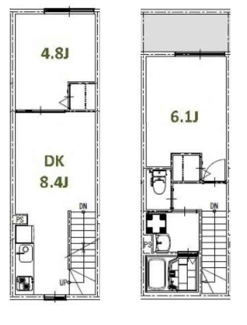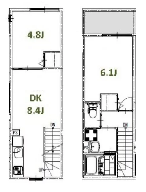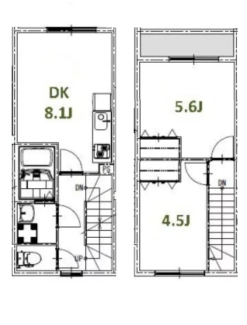 2・3階はメゾネットタイプの2DKが9部屋です。