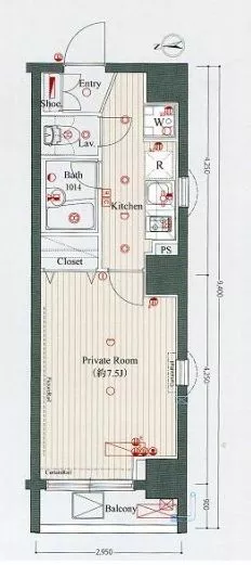 | 間取り | 1K | 面積 | 25.07㎡ |