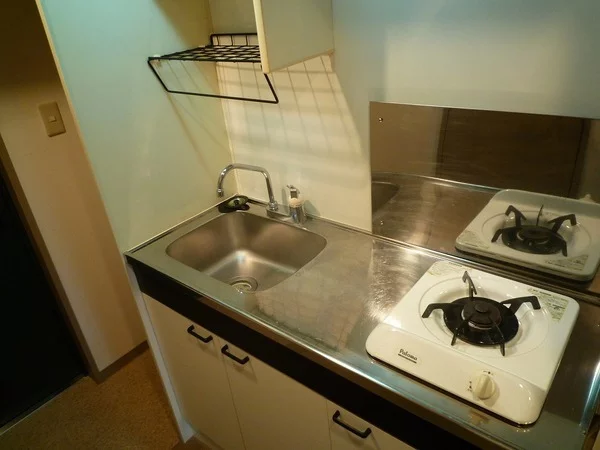 キッチンは1口のシステムガスキッチンで、収納スペースも多めに取られているのでお1人暮らしには十分な量となっております。