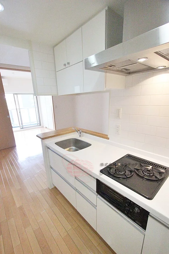 キッチンはガス2口コンロ完備のシステムキッチンはオシャレなカウンターキッチンタイプ。