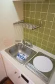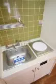 キッチンには懐かしさを感じる電気コンロが1口付きのミニキッチン!浴室とトイレが同室の3点ユニットバスタイプなど水周りの設備がコンパクトにまとまっているのも使いやすい工夫のひとつです♪