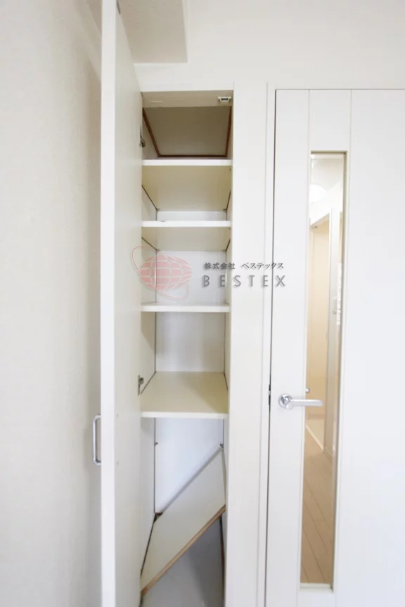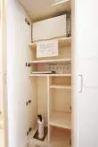 洗濯機置き場は、玄関先になりますが目隠しの扉がついているので急な訪問者が来ても安心です。居室部分とも離れているので、稼働音も気にすることなく生活できます。