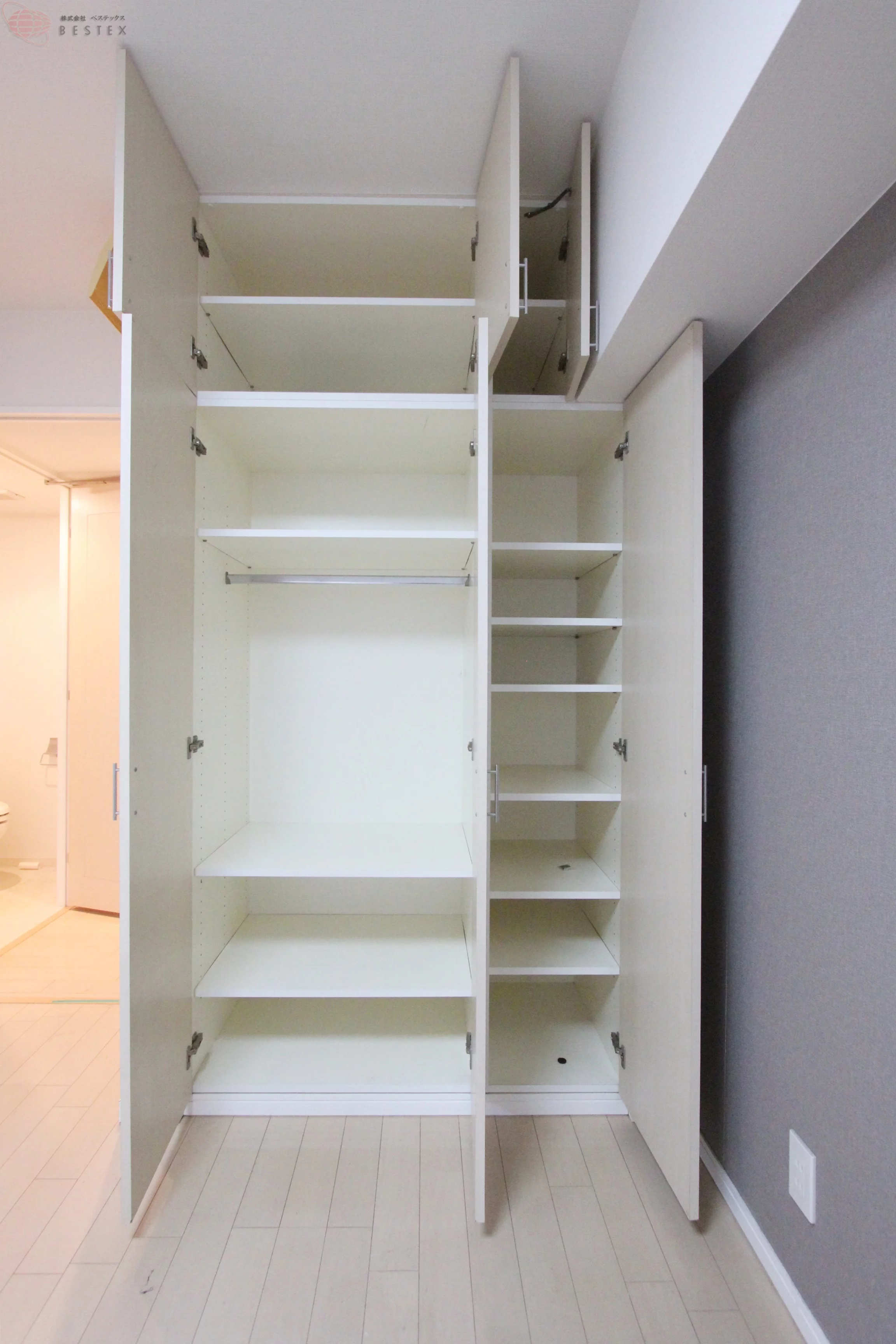 ①洋室は広々6.7畳!収納スペースは細かく棚で区切られており、整理整頓に役立ちそうです♪