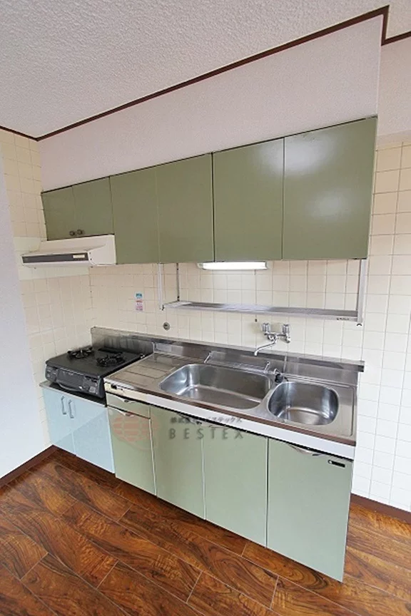 ガスキッチン、独立洗面台、バス・トイレ別、室内洗濯機置場、収納、下足入れ。