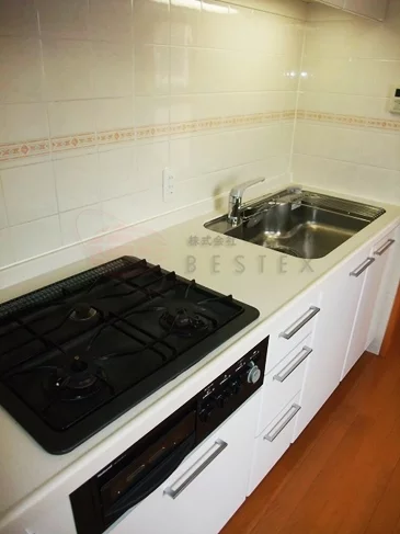 ②調理スペース・3口ガスコンロのシステムキッチンの充実さ♪
