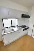 エアコン、ガスキッチン、洗濯機置場(室外)、収納、UB(3点)、バルコニー。