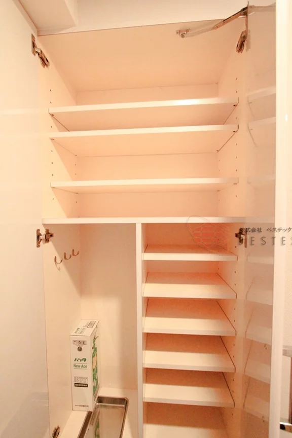 玄関前にはシューズボックスに加え、扉付き収納が別に備え付けられていますので、靴が多い方も安心です。