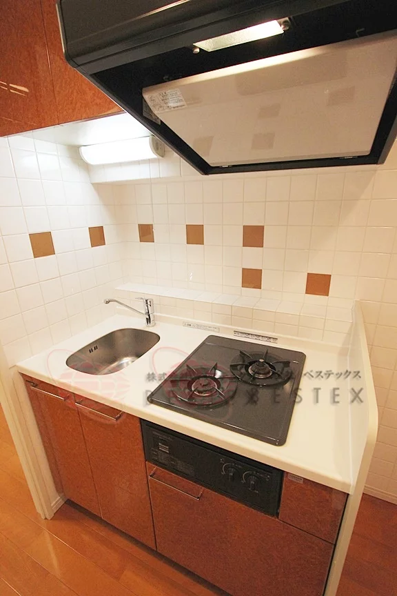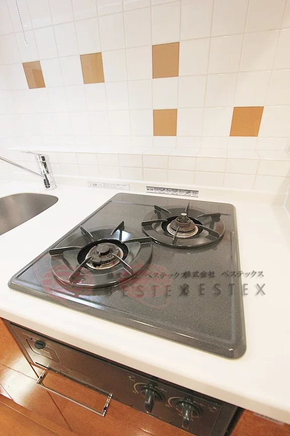 キッチンはガス2口のシステムキッチンでお料理もしやすいです!