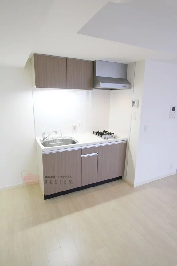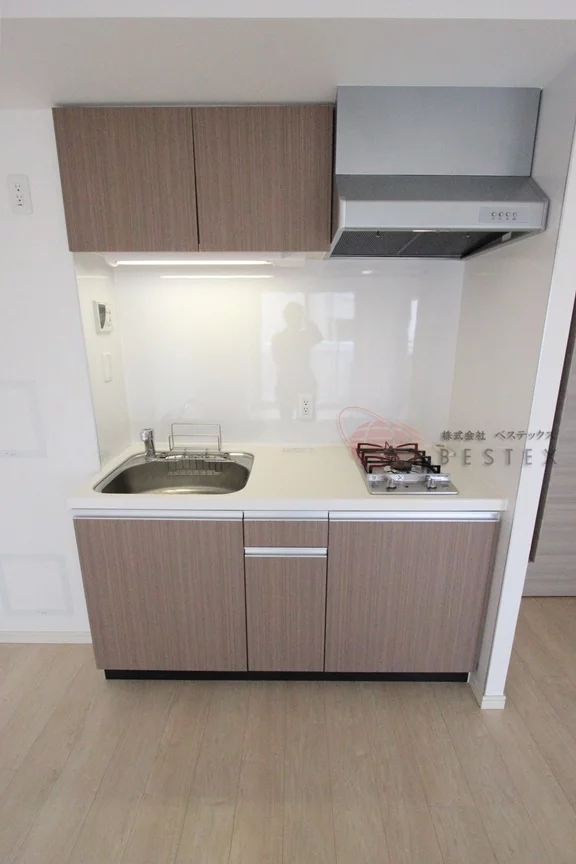 キッチンにはグリル付きの3口ガスコンロが備え付けられているので、本格的な料理をする方でも十分な設備になっています。