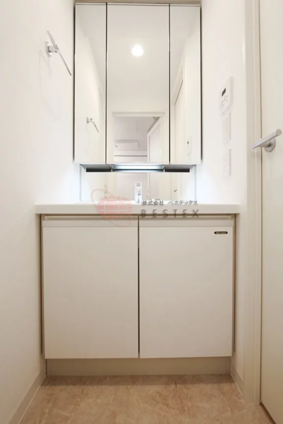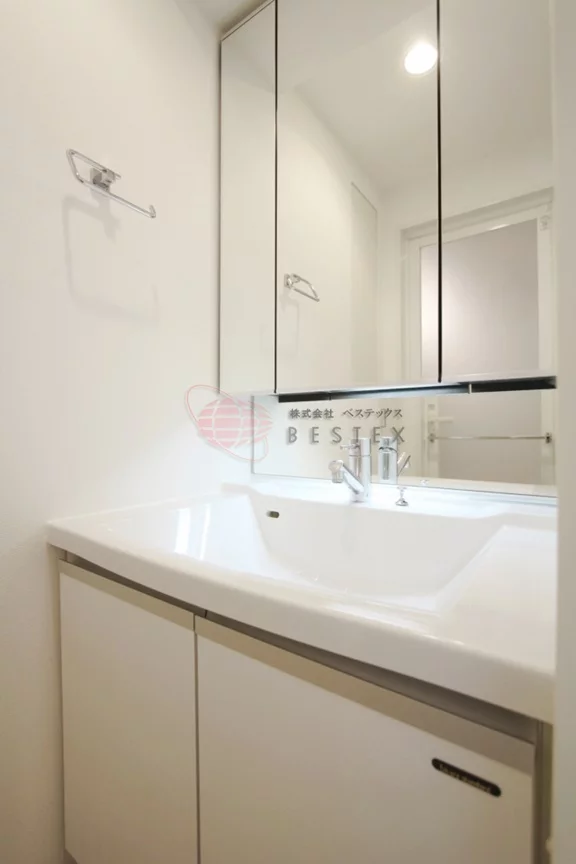 脱衣スペースとしてお使い頂ける洗面室には独立洗面台が完備されています。朝の身支度時に重宝する人気の設備です♪