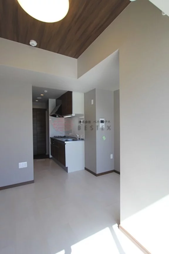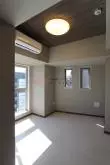 居室は約9.6帖の広さが確保されており、二面採光によって室内には豊かな自然光が差し込みます。室内は木の温もりが感じられるフローリング仕様で、エアコンが完備されているため、入居後すぐに快適な生活を始めることが可能です。白を基調とした壁紙とモダンな内装デザインが、洗練された都市生活を演出しています。