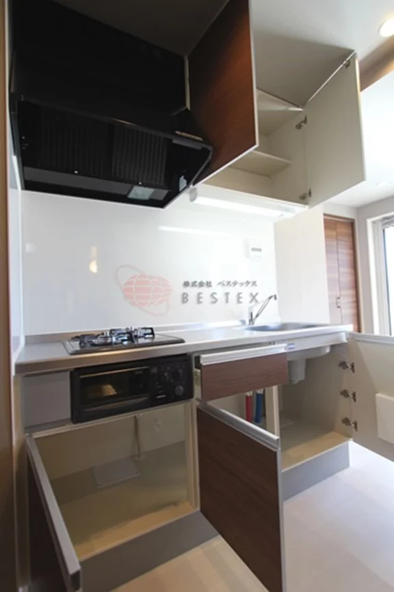 キッチンエリアには2口ガスコンロ付きのシステムキッチンを採用しており、自炊をされる方にとっても使い勝手の良い設計です。水回り設備も分譲マンションクオリティの充実した内容となっており、バス・トイレ別なのはもちろん、朝の身支度に便利な独立洗面台や、冬場でも快適な温水洗浄便座を完備しています。バスルームには、天候や時間を気にせず洗濯物を乾かせる浴室乾燥機が備わっている点も、忙しい単身者には嬉しいポイントです。