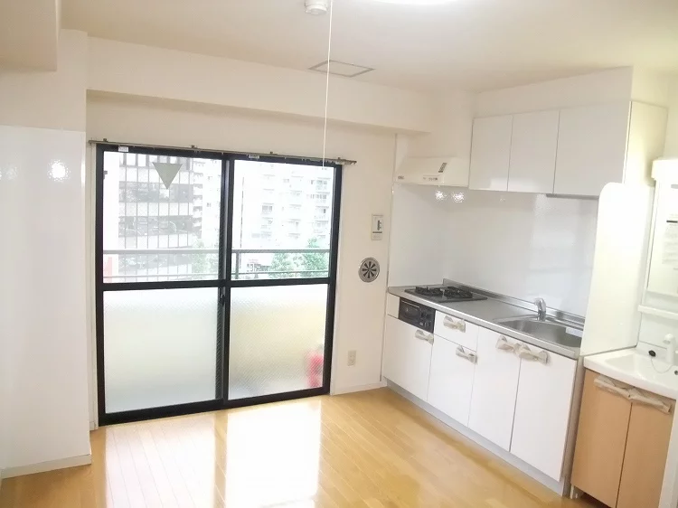 6階部分のお部屋のご紹介です!ちょっと広めの1DKタイプ、ダイニングキッチンは6.9帖でガスコンロが2口付♪忙しい朝に嬉しいシャンプードレッサーも完備しております。