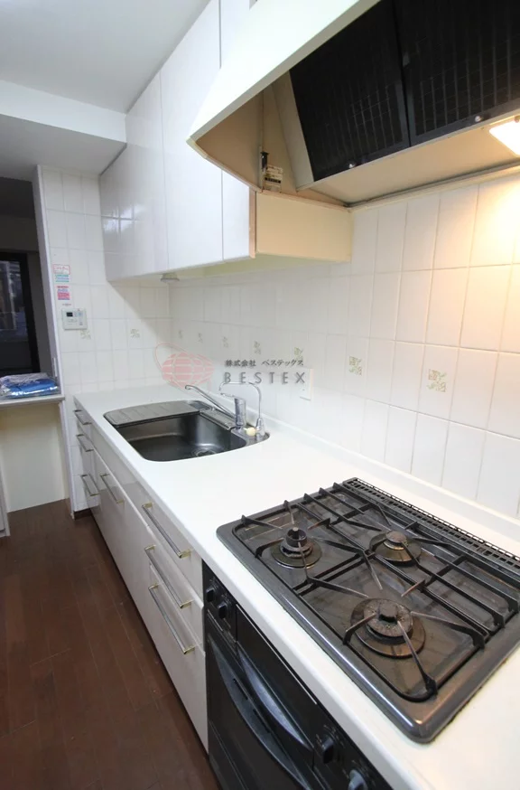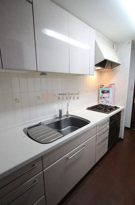 大きなシステムキッチンは使い勝手も良く、ガス3口コンロとグリル・オーブン・浄水器も付いており料理も捗る仕様です♪