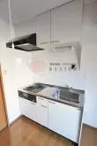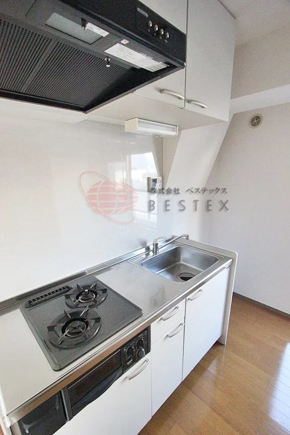 室内洗濯機置場も完備。キッチンはガス2口コンロ完備のシステムキッチン。