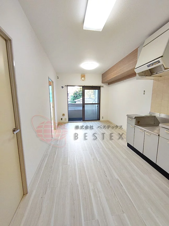 LDK9.6帖フローリング敷。通りに面しておりますので明るいお部屋です。