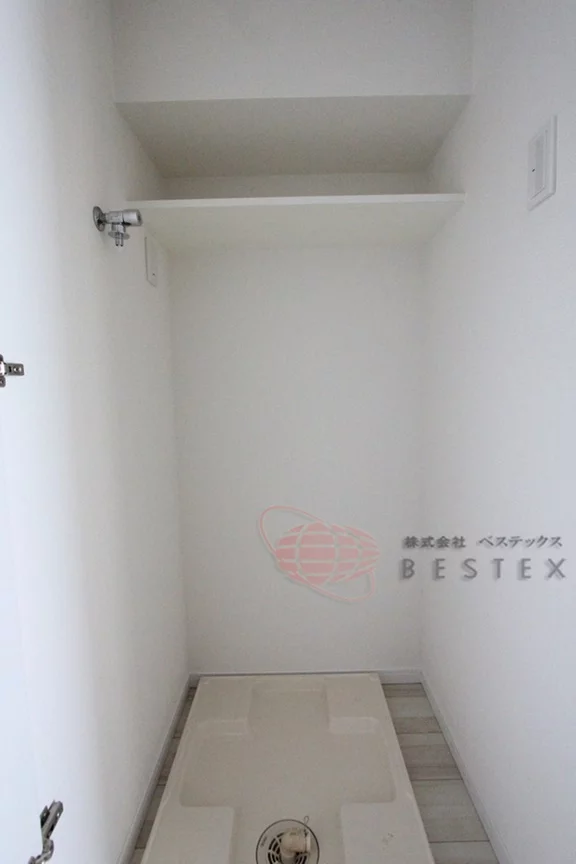 ②洗濯機置き場は扉付きで生活感を隠せます