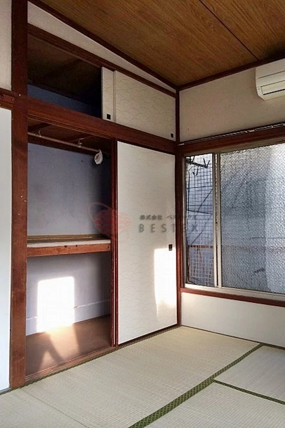 居室は6帖の和室で、大きな押し入れを完備しておりますので荷物をたっぷり収納頂けます!