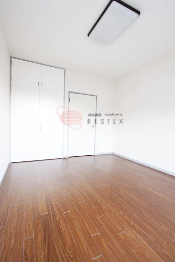 洋室は、約6.0帖で梁のない綺麗なお部屋となっております。6.0帖ですが、体感は数字以上の広さを感じます。クローゼットも大きく大容量なので入居後も収納家具をご用意することもなくお部屋を広く使うことができます。また天井も高いので開放感がございます。