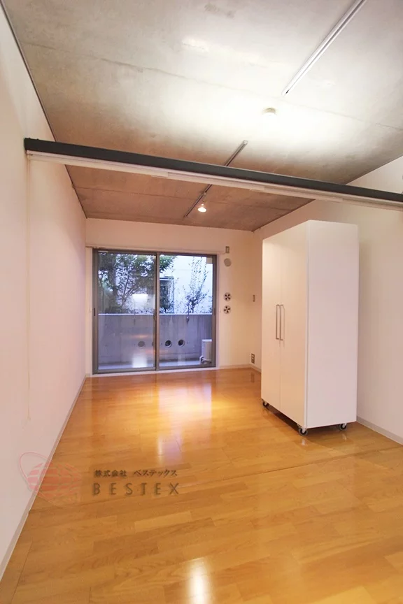文京区千石1丁目のデザイナーズマンション【百番館】の賃貸のご紹介です。こちら一階のお部屋ですが実質2階の高さになります♪内装は壁の一部がコンクリートの打ちっぱなしのものに。可動式のライティングレールや同じく可動式となっている収納などによりそれぞれの暮らしやすいように部屋の配置を組み替えられる自由度があるのも魅力です。掲載情報について