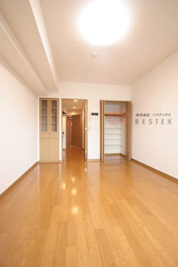 居室の梁が少なく数字以上に広さを感じます。また、利用できる壁が多いので家具家電の配置もしやすくなっております。クローゼットと食器棚があるので追加で収納家具を用意する必要がないので、引っ越しの費用を抑える事ができお部屋も広く使うことができます。