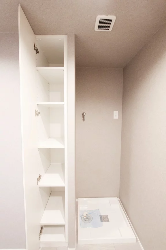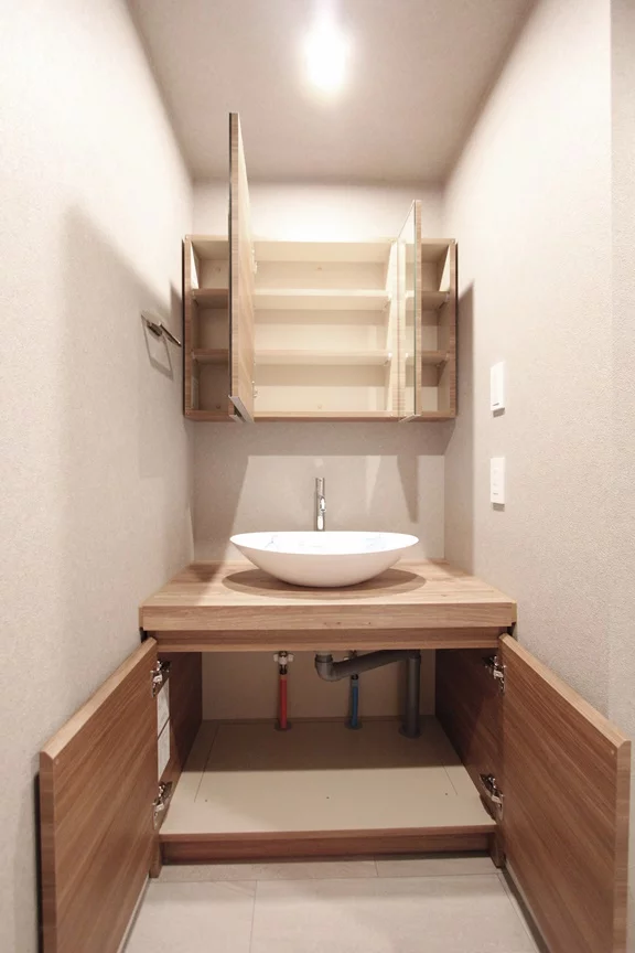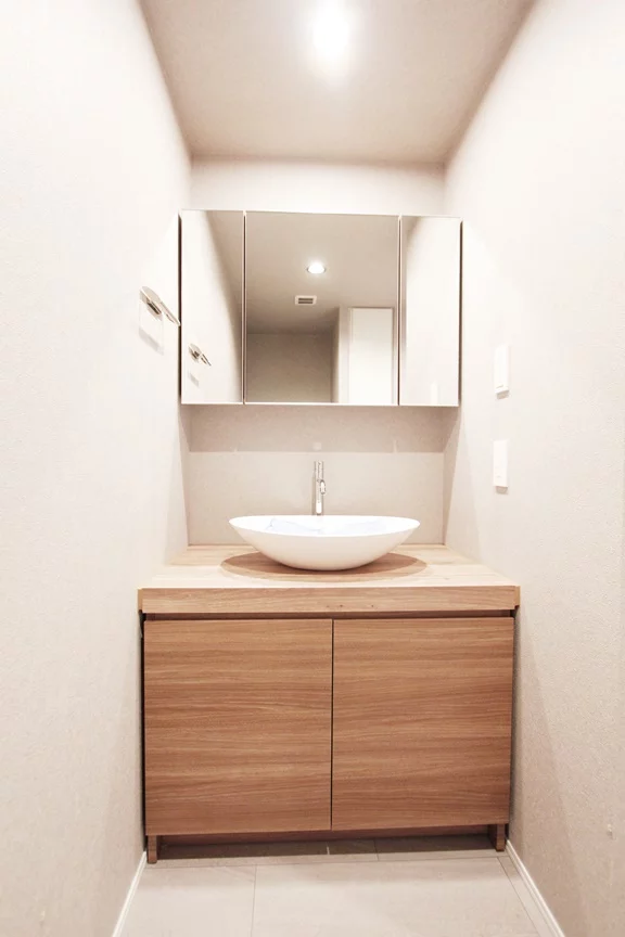 キッチンは、3口ガスコンロでグリルもついているので焼き魚など凝ったお料理にも挑戦できます。さらに収納面が優秀でキッチンの後ろにも腰の高さの収納がありカウンターとしても利用できるので、。効率的にお料理を進める事ができます。
