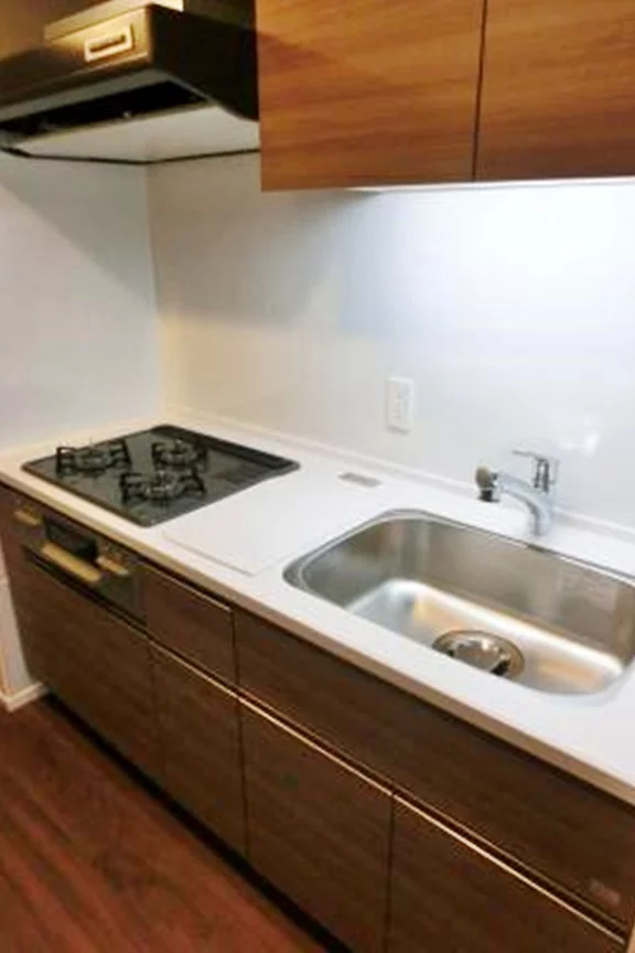 キッチンはグリル付きでガスコンロを3口完備しております。