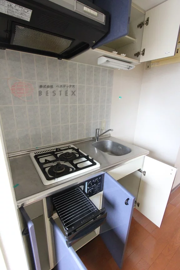 ③.キッチンは、2口ガスコンロのシステムキッチン、