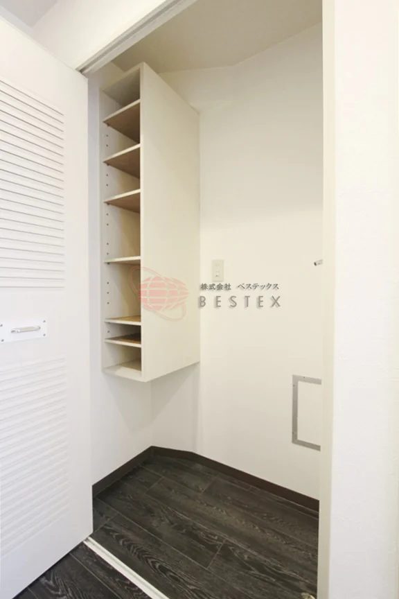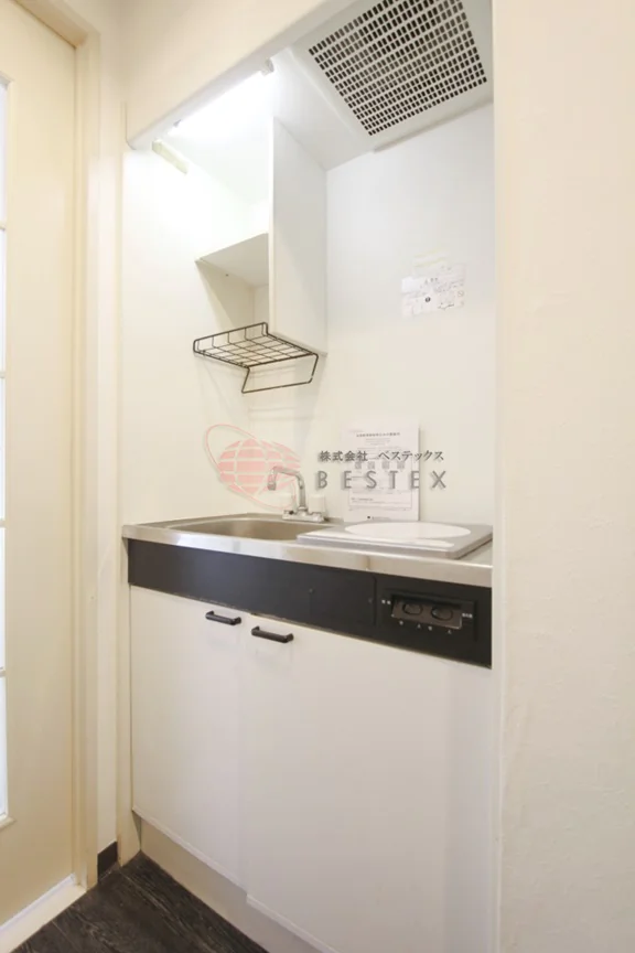 間取りは家具配置のしやすい1Kタイプで、ベッドやデスクを置いても生活動線を確保しやすい設計。キッチンは1口IHコンロを採用しており、火を使わず安心かつお手入れも簡単です。バス・トイレは3点ユニットですが、室内洗濯機置き場があり、天候や時間を気にせず洗濯できるのも嬉しいポイント。