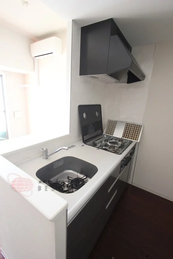 キッチンにはグリル付き3口ガスコンロを採用したシステムキッチンになっているので、料理が好きな人にオススメできる設備です!