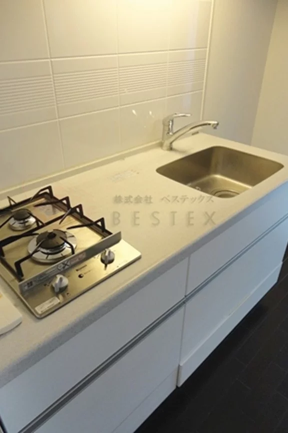 水回りはキッチンは2口のガスコンロ・システムキッチンでございます。