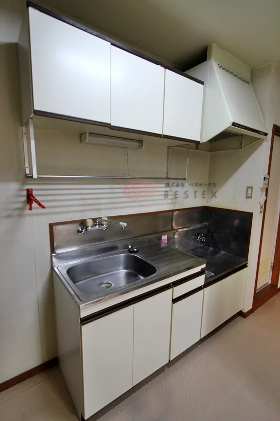 キッチンにはガスコンロを設置可能!大きめのシンクは洗い物がしやすくとても便利♪エアコン・室内洗濯機置き場など、あると便利な設備も充実しております。