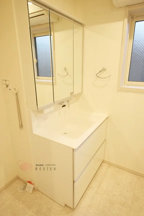 洗面室に完備されているシャンプードレッサーは蛇口がノズル式なので洗髪が可能なので朝の身だしなみチェックなどにも乙かいいただけます!