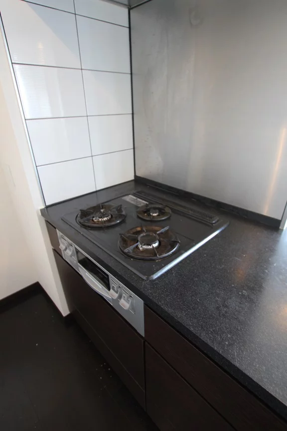 キッチンは3口ガスシステムキッチンでカウンター式☆