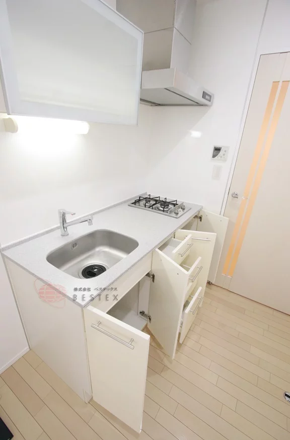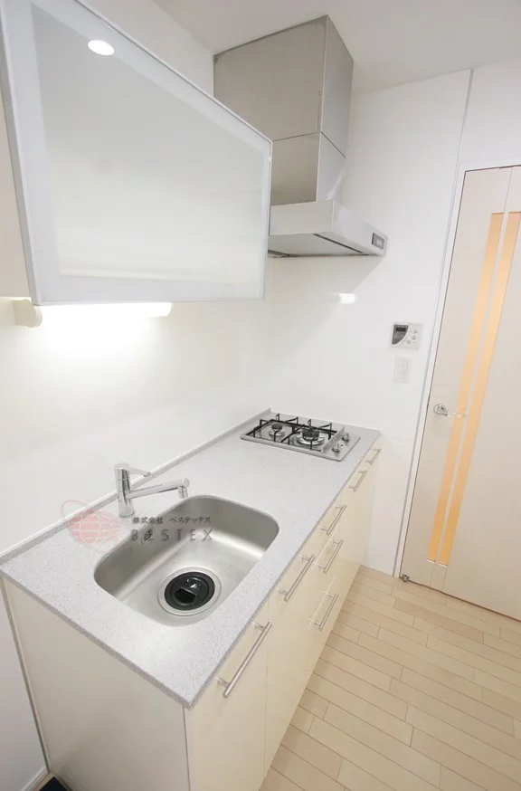 キッチンは充分なスペースがあり、料理がしやすくなっております。収納力もあるので調理器具をたくさんお持ちの方にもオススメです。玄関入ってすぐのところにあるので誰かに見せるキッチンを作り上げることも楽しみの1つと言えるでしょう。