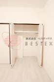 隣接する約8.38帖の洋室もまた魅力。梁の出っ張りが少なく、家具の配置がしやすい整形な間取りで、快適なプライベート空間を実現します。ここにも横に広いクローゼットが完備されており、衣類や季節用品の収納に困ることはありません。
