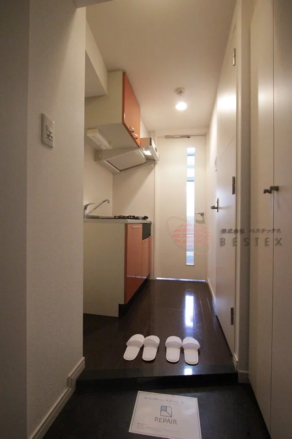 冷蔵庫置場が廊下部分にあるので居室に持っていく必要がなく、その分余裕を持ってスペースを室内の活用出来ます。