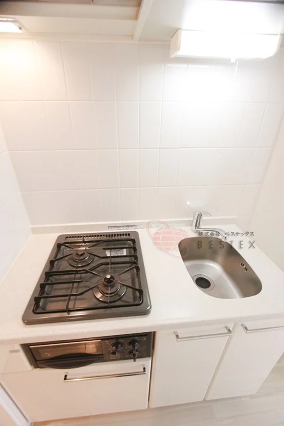 キッチンには料理好きには嬉しい2口ガスコンロのシステムキッチンを完備!