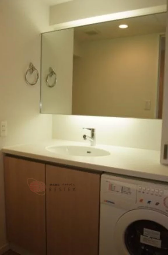 洗面所には洗濯機置き場も備え付けてありますので、脱衣所としてもご利用頂けます。