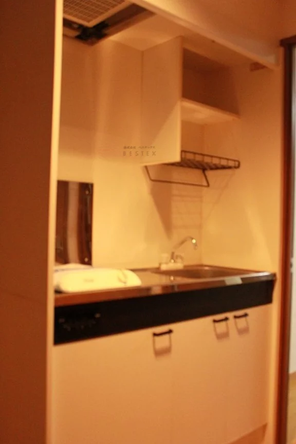 キッチンは1口ガスキッチンで、居室とは扉で完全に分かれているため、調理の際に居室に匂いが残りません!