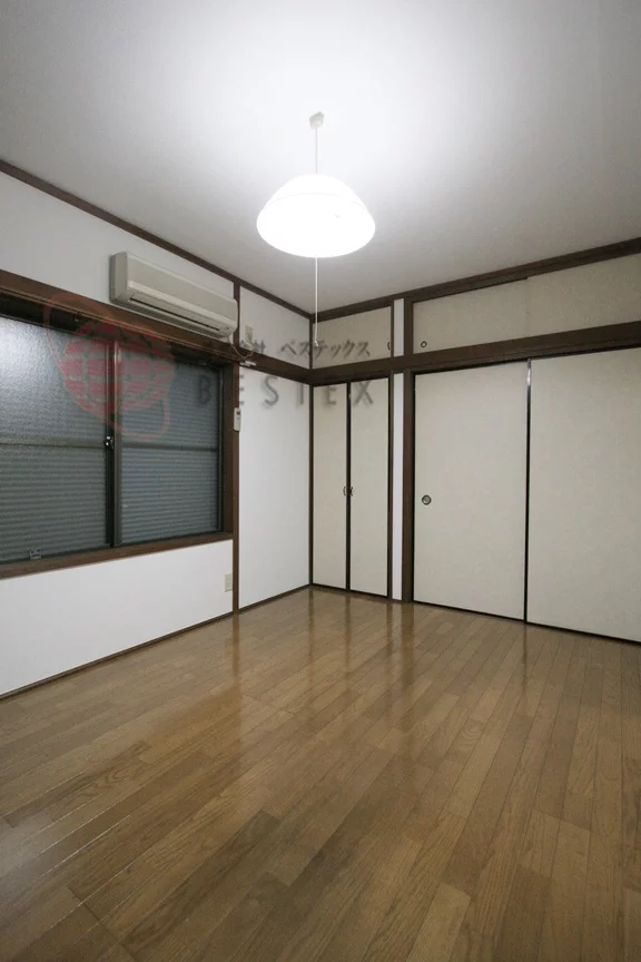 洋室は約6帖の広さで大き目の収納が備わっているのため、